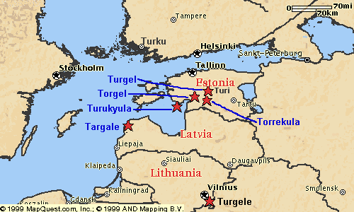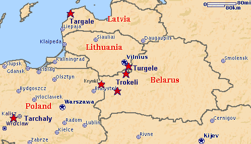 Stars denote where we found Turkel familes, most of them were living within the circled regions